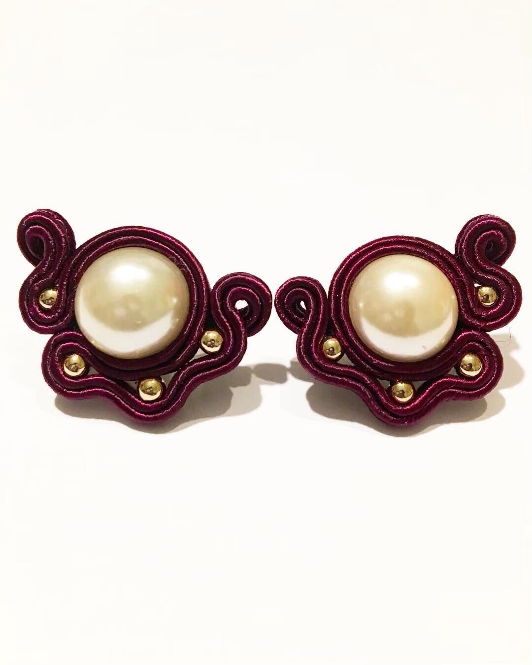 ソウタシエ(soutache)とはヨーロッパの伝統的なコード刺繍で、ビーズやカボションをブレード(平たい紐)で囲みながら針と糸で縫い形作っていきます。